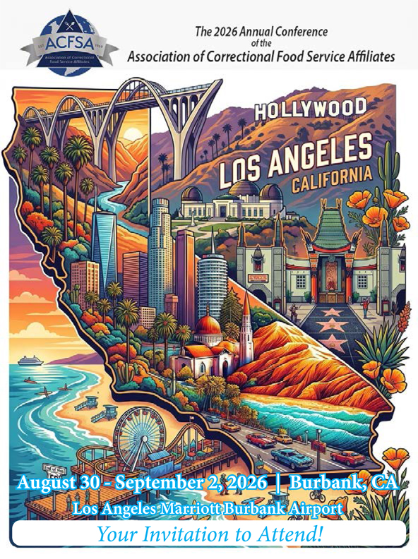 The 2026 ACFSA Annual International Conference and Vendor Showcase will be held in Burbank, CA! The theme for the 2026 ACFSA Annual International Conference and Vendor Showcase is Reaching for the Stars. ACFSA and the 2026 ACFSA Conference Committee has continued to diligently work on another outstanding program for you with relevant, exciting educational sessions to keep you up-to-date on the latest trends in the Correctional Food Service Industry.